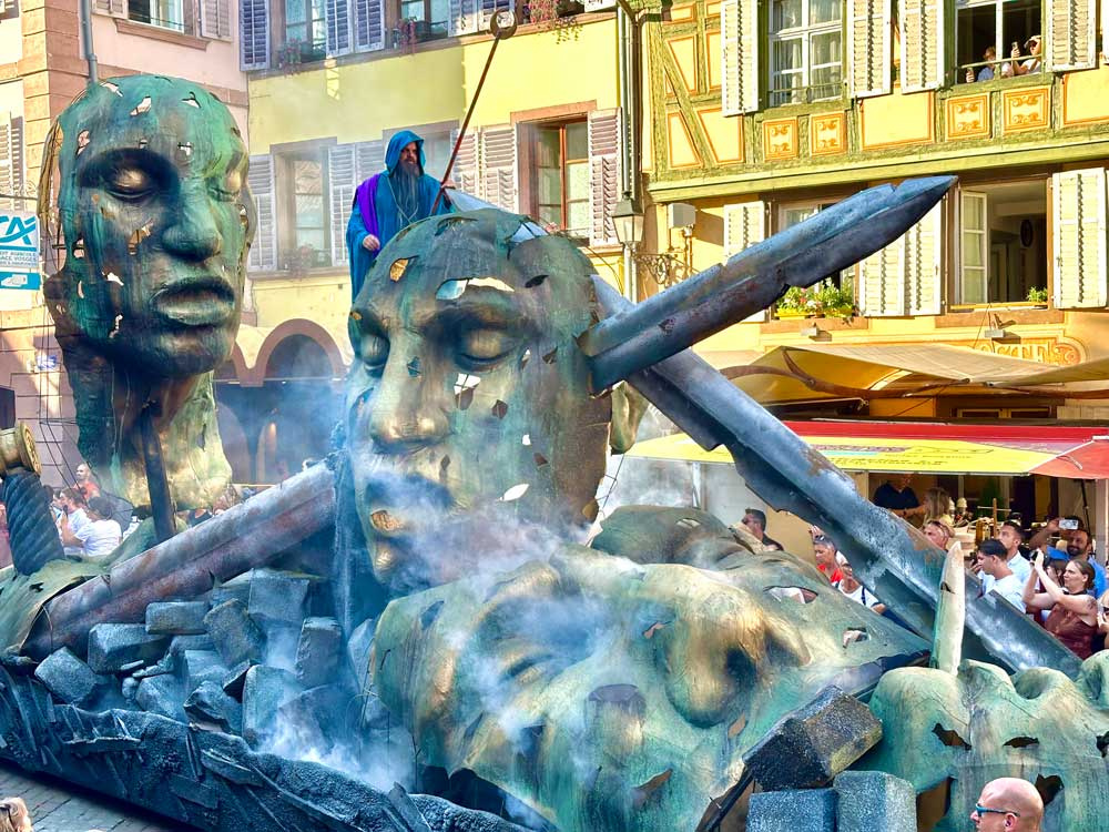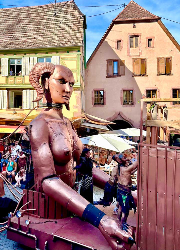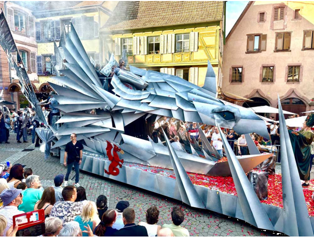 Die Vereine von Ribeauvillé treten nämlich in einen regelrechten Wettbewerb, um den schönsten Wagen nach den Zeichnungen eines Modellbauers zu bauen. Jedes Jahr dient ein anderes Thema aus dem Mittelalter als Leitfaden; 2024: "Les Jeux des Ribeaupierre" (Die Spiele der Ribeaupierre).